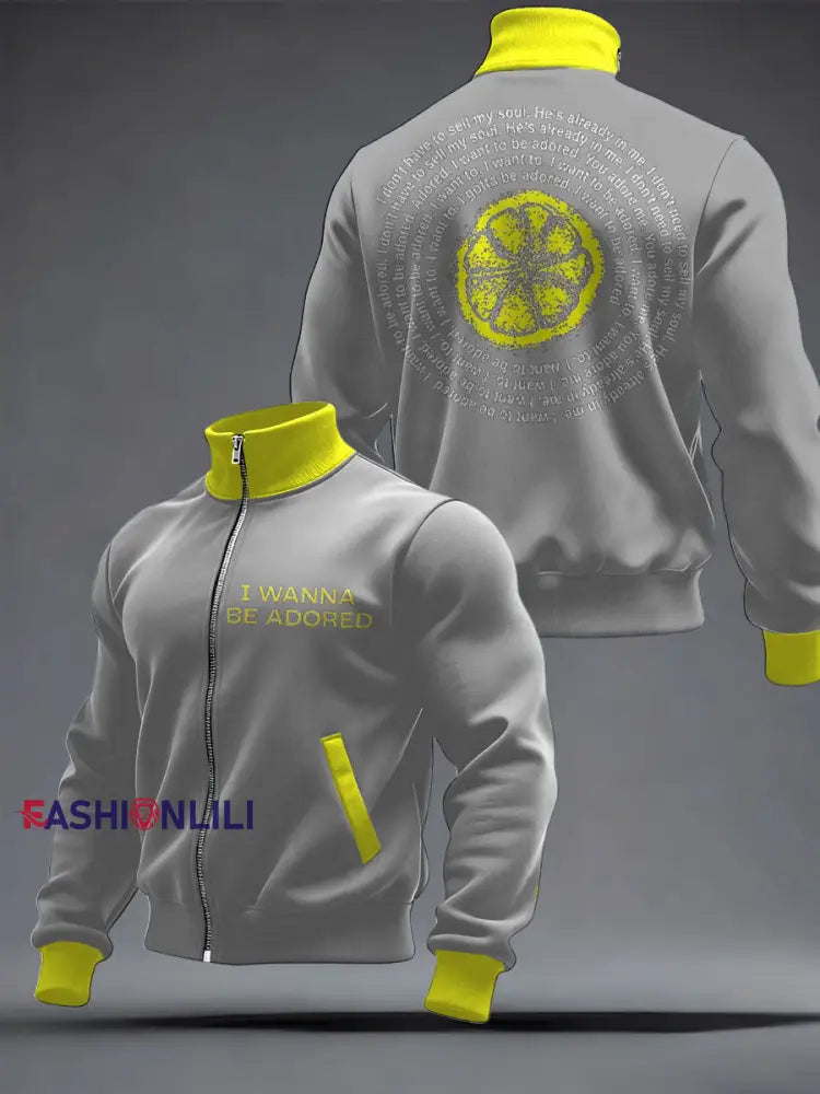 Men's I Wanna Be Adored Lemon Roses Music Lover Printed Coat