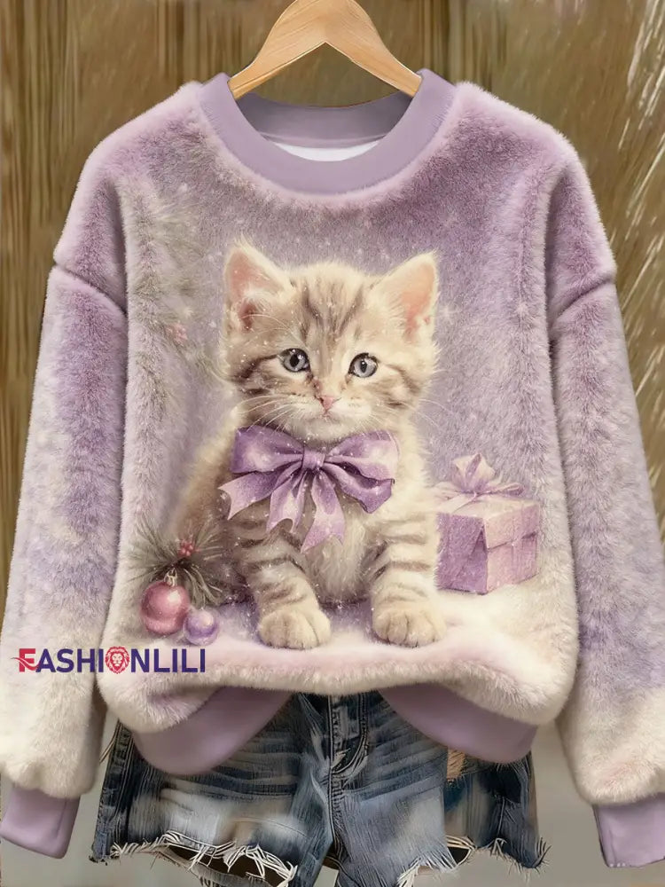 Women's Purple Art Christmas Alzheimer's Awareness Printed Sweatshirt